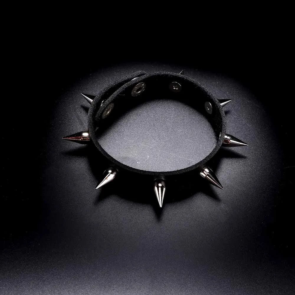 Name: Pulsera gótica negra Punk para mujer, remache de punta cónica, brazalete de cuero negro, talla grande, Unisex